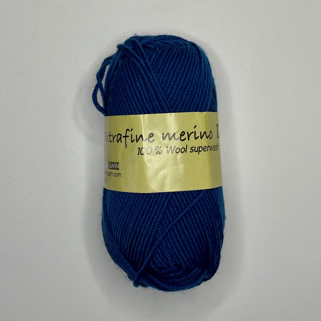 100% Wool superwash Vægt: 50 g løbelængde. ca. 120m Strikkefasthed: 22m Pinde: 3½-4 Vask: 30° uldprogram