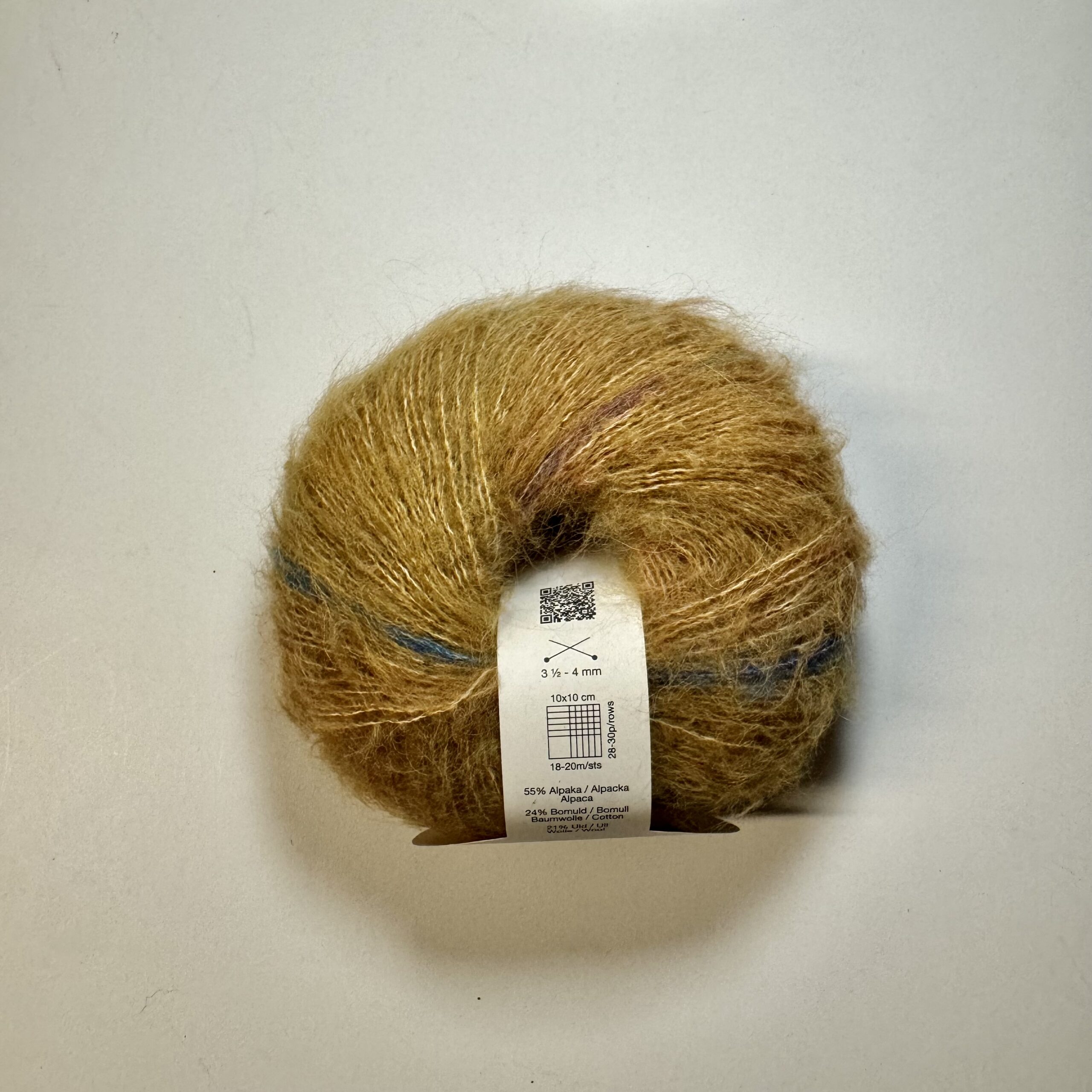 Nellie består af 55% superfine, børstet alpaka, 24% bomuld og 21% merinould Strikkefasthed: 18-20 masker Anbefalede pinde: 3,5-4 mm Løbelængde: 200m pr. 50g