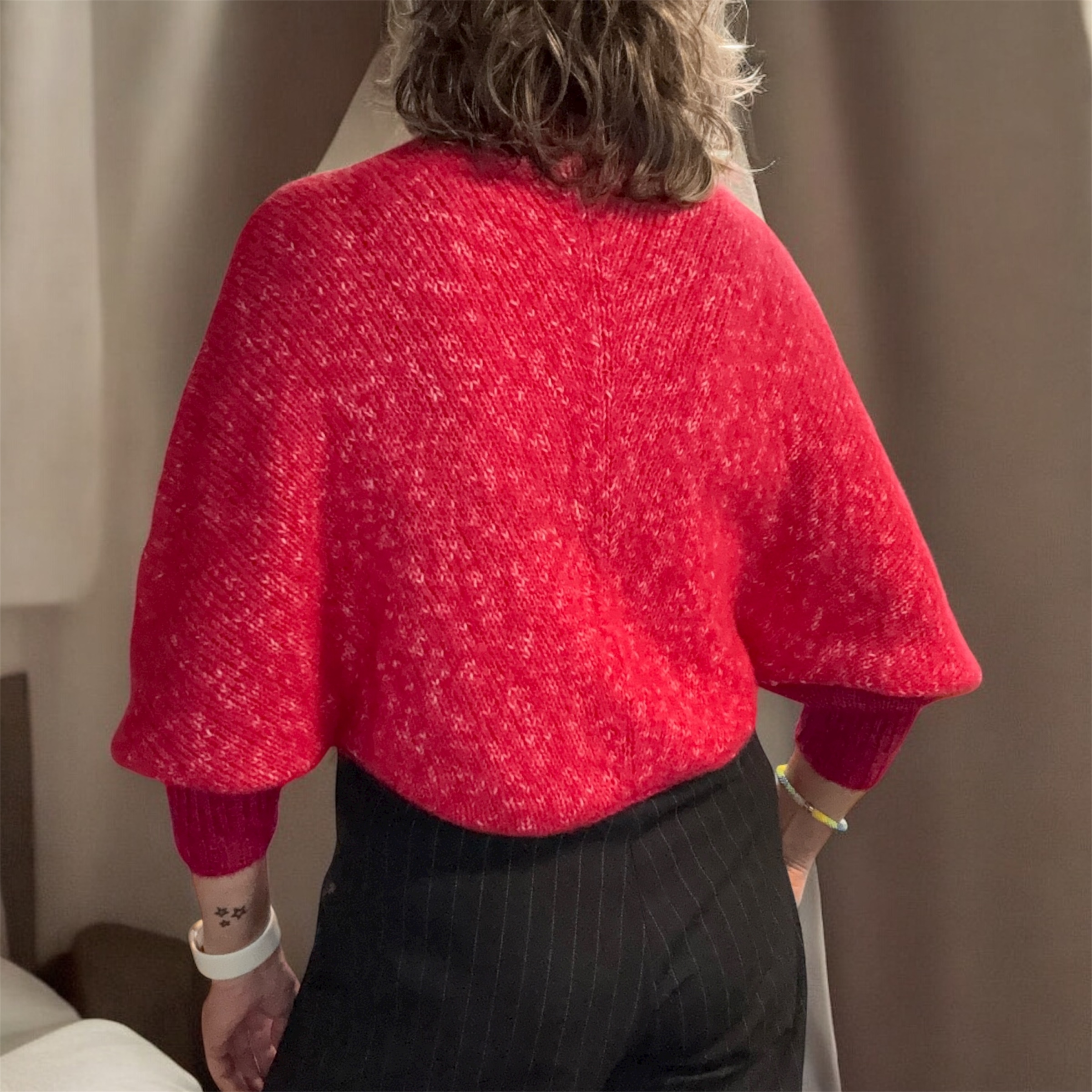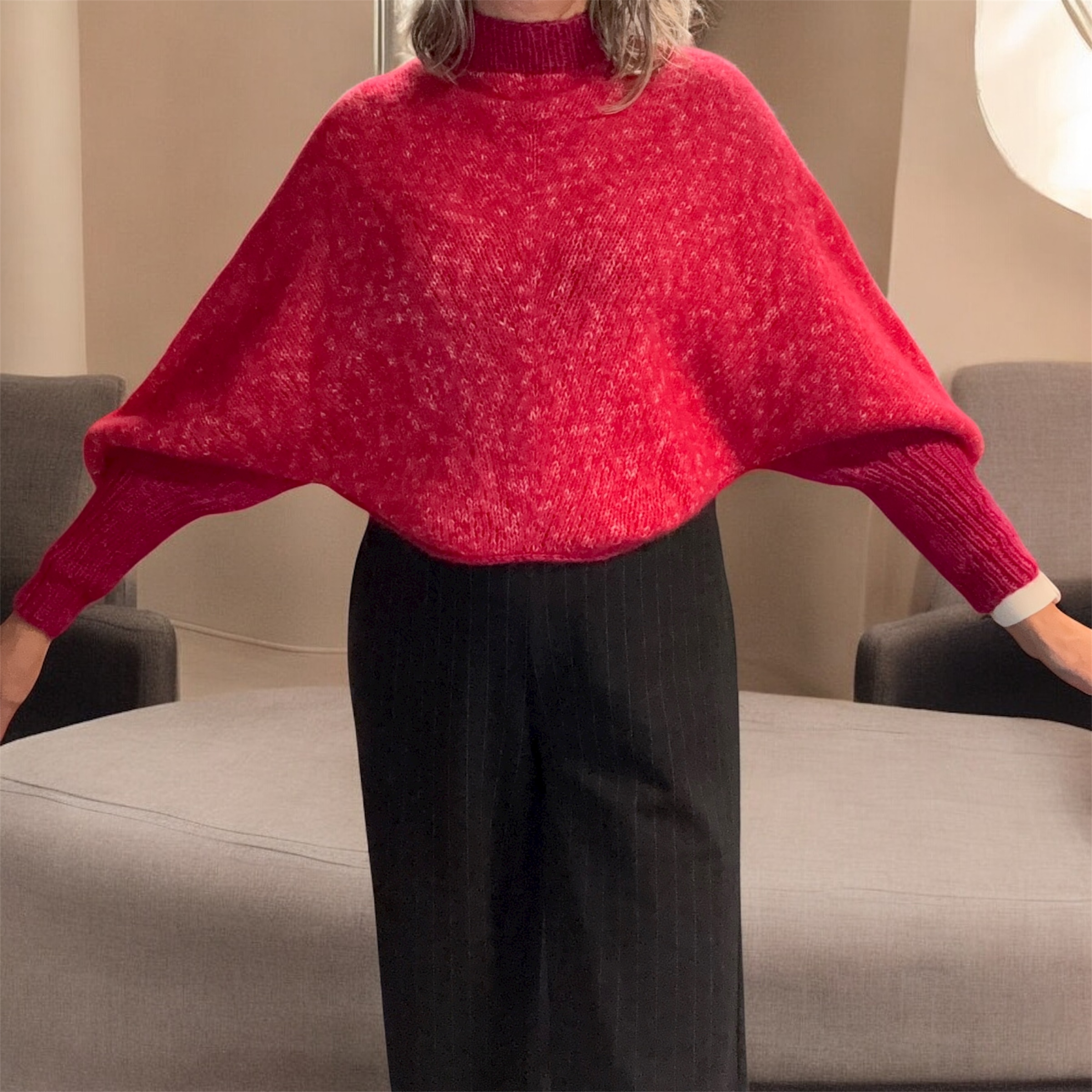 TIlbage til 80’erne er inspireret af 80’ernes modebillede og er strikket i det blødeste garn, som indeholder alpaka, bomuld og uld.